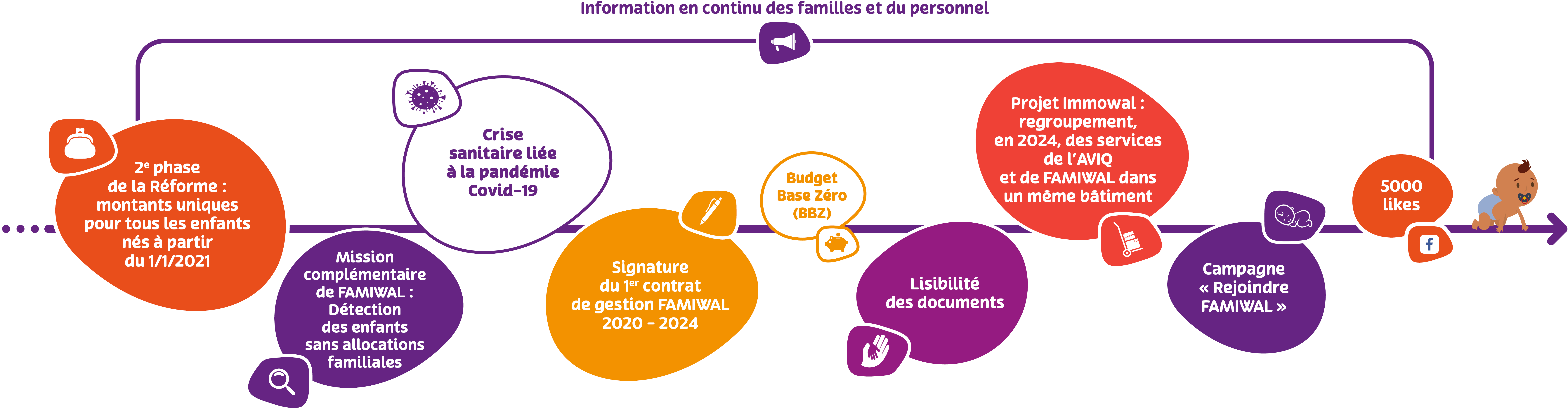 La notion de service public, qui est profondément ancrée dans la culture d’entreprise des collaborateur(trice)s de FAMIWAL, constitue un gage de qualité et un atout sur lesquels FAMIWAL peut s’appuyer pour se profiler, dans son nouvel environnement, comme l’organisme de référence pour les familles wallonnes.